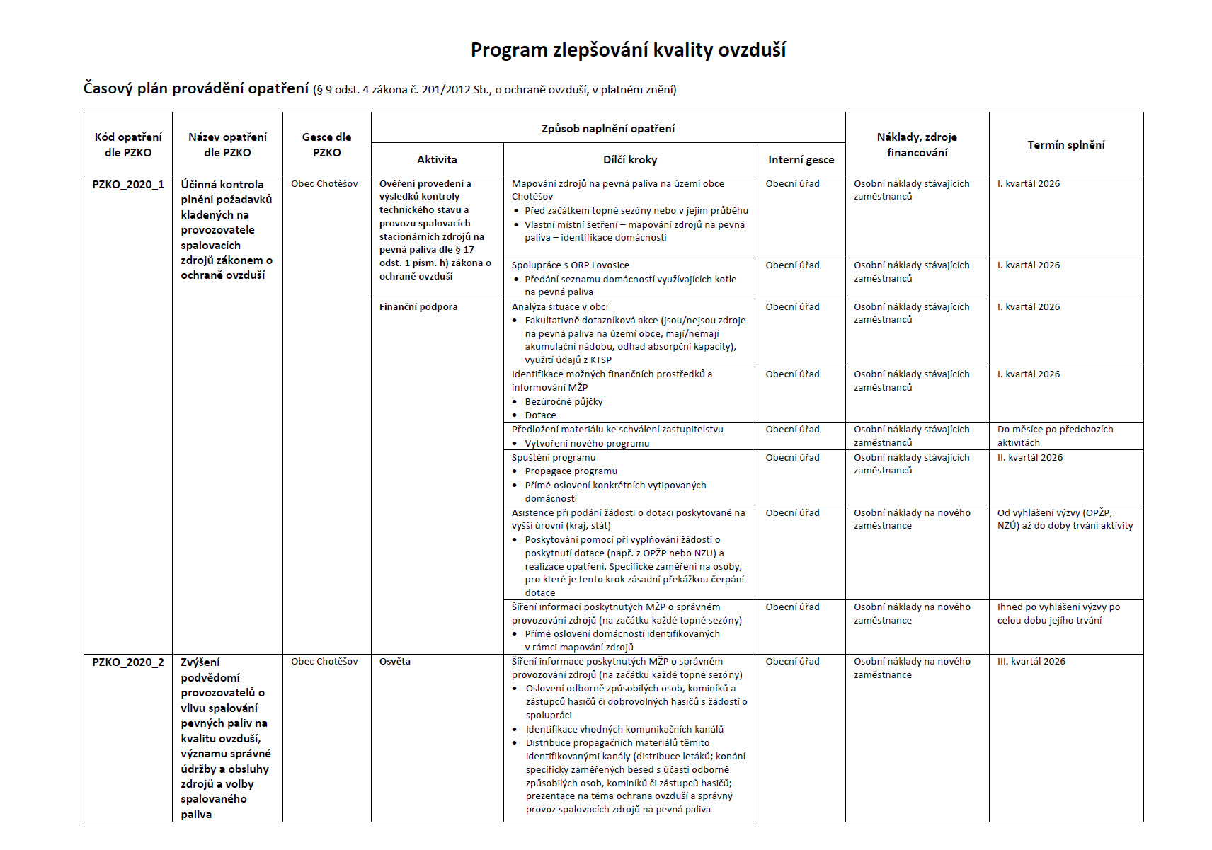 Obec Chotěšov je jednou ze 4 obcí v územní působnosti ORP Lovosice, ve které je třeba realizovat opatření uvedená v programu zlepšování kvality ovzduší, neboť jsou zde překračovány imisní limity. Obec Chotěšov je tak povinna vypracovat časový plán provádění opatření, aby bylo dosaženo imisního limitu co nejdříve.